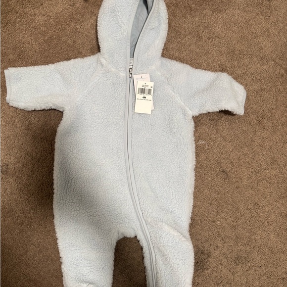Soft and cozy hooded footie. Ideal for keeping your baby warm.