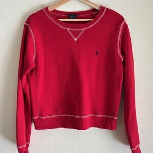 Polo Ralph Lauren sweatshirt, red crewneck pullover, women’s M sport fleece, classic Ralph Lauren logo sweater, athleisure