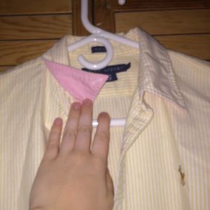 This is a slim fit long sleeve with all buttons intact. It can fit a small or medium. Worn a few times years ago, still in very good condition.