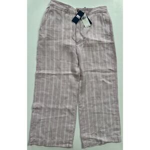 Polo Ralph Lauren Striped Cropped-Leg linen Trousers Light Pink Women's Size 8