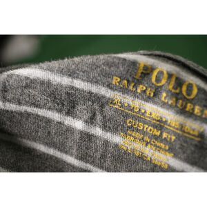 Classic and stylish Polo Ralph Lauren striped t-shirt in gray and white. Features the iconic embroidered Polo pony logo on the chest. Perfect for casual wear or layering, this shirt offers timeless design and comfort.