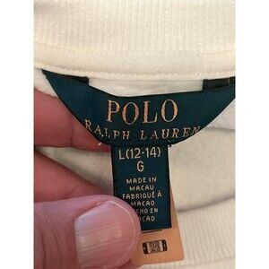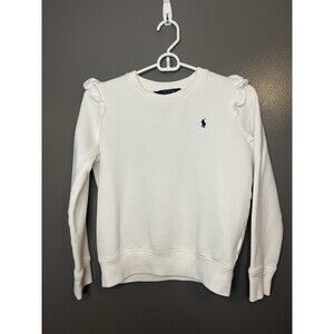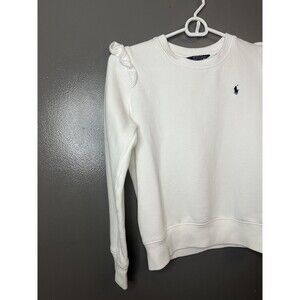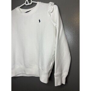 Polo Ralph Lauren Sweater Girls Large 12-14 White Ruffle Shoulder Crewneck Pullover