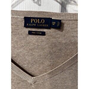 Polo Ralph Lauren Mens Sweater V-Neck Pima Cotton Pullover Casual Beige sz 2XL. Like new condition. Pit to pit measures approx 29 Shoulder to hem measures approx 30 100% Pima cotton