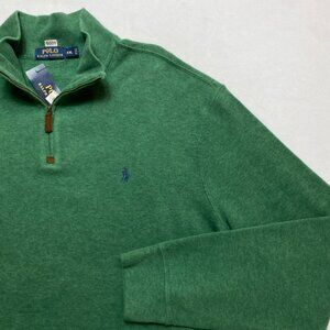 Polo Ralph Lauren Sweater Mens 2XL Green Long Sleeve 1/4 Zip Blue Pony NWT