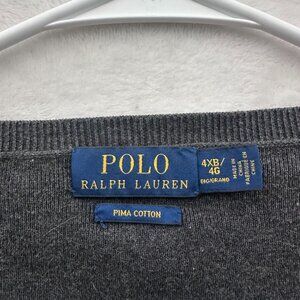 Polo Ralph Lauren Sweater Mens 4XB Big Gray V Neck Pullover Pima Cotton
