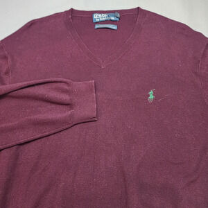 Polo Ralph Lauren Sweater Mens Burgundy V Neck Pullover Pima Cotton Sz XXL