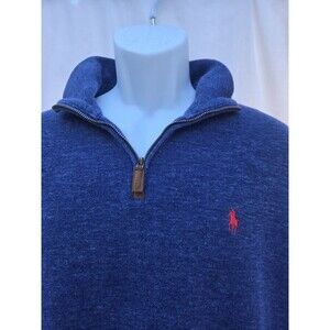 Polo Ralph Lauren Sweater Men's Large 1/4 Zip Long Sleeve Blue Pony Logo Heavy