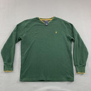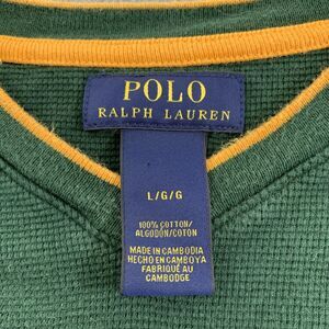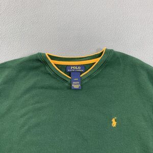 Polo Ralph Lauren Sweater Mens Large Green Yellow Crewneck Waffle Knit Cotton