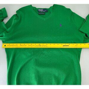 Polo Ralph Lauren Sweater Mens Large L Pullover 100% Pima Cotton Green V Neck