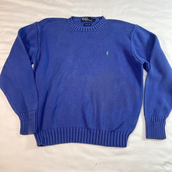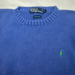 Polo Ralph Lauren Sweater Men's Size L Blue Knit PullOver Cotton Vintage * AS IS.