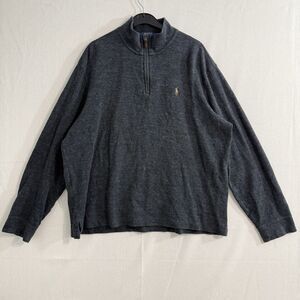 Polo Ralph Lauren Sweater Mens Sz L Heather Gray Pullover Quarter Zip Estate Rib