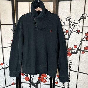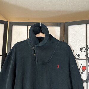 Polo Ralph Lauren Sweater Mens XL Black Cowl Neck Pullover 2 Button Thick