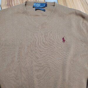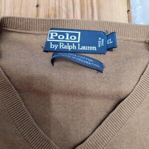 Polo Ralph Lauren Sweater Men’s XL Brown Pima Cotton Knit V-Neck Pullove…