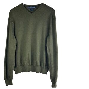 Polo Ralph Lauren Sweater Pullover Mens Sz XL Olive Green 100% WOOL V-Neck
