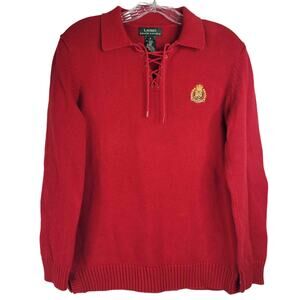 Polo Ralph Lauren Sweater Pullover Womens Small S Chunky Gold Crest Vtg Red
