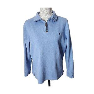 Polo Ralph Lauren Sweater Ribbed Long Sleeve Pony 1/4 Zip Blue Men's Medium