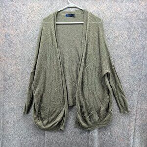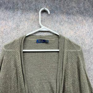 Polo Ralph Lauren Sweater Women Medium Green Cardigan Tan Beige Linen Viscose