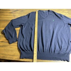 Polo Ralph Lauren Sweater Mens 2XL Blue V-Neck Pullover Pima Cotton