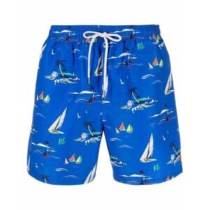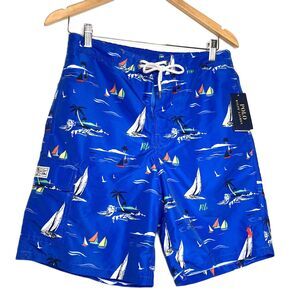 Polo Ralph Lauren Swim Trunks 8” MainStreet 3 Blue Tropical Mens Size S Sailboat