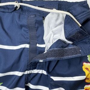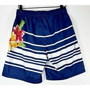 Polo Ralph Lauren Swim Trunks Medium Navy Stripe Hibiscus Floral Board Shorts