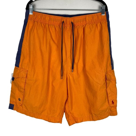 Polo Ralph Lauren Swim Trunks Mens Large Orange Blue Cargo Pocket