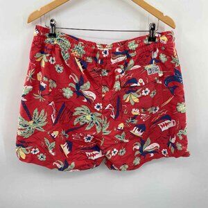 Polo Ralph Lauren Swim Trunks Mens XL Red Hawaiian Floral Print Polyester