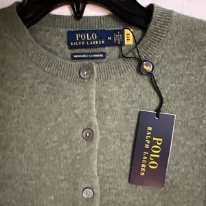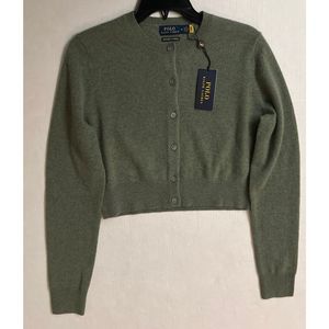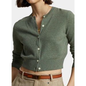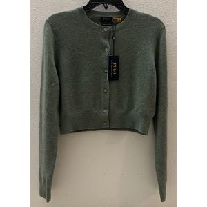 Polo Ralph Lauren Sz M Green/Gray Cropped Crewneck Cardigan Cashmere Sweater