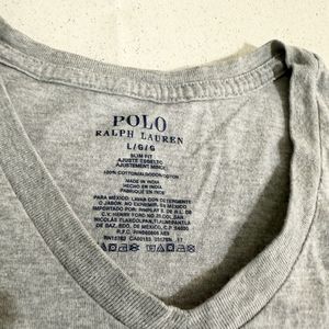 Polo Ralph Lauren T Shirt Men Large Slim Fit Pony V Neck Gray Short Sleeve