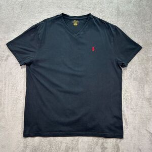 Polo Ralph Lauren T- Shirt Mens Large Black Red Pony Short Sleeve V-Neck Classic
