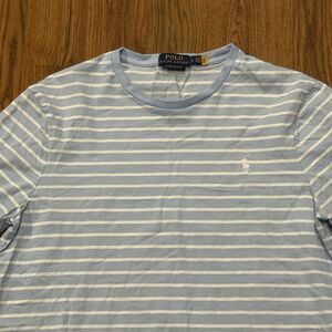 Polo Ralph Lauren Tee Shirt Mens Large Custom Slim Fit Blue White Striped Cotton