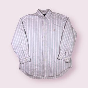 This shirt is size 16 and made of high-quality cotton fabric. It has a classic fit, making it comfortable to wear throughout the day. Whether you're looking for a stylish addition to your wardrobe or a gift for a loved one, this Polo Ralph Lauren shirt is a great choice.