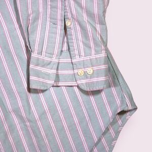 Elevate your style with this classic Polo Ralph Lauren button-up shirt. Featuring a timeless striped pattern, long sleeves, and a collared neckline with a button-down style, this shirt is perfect for both casual and business occasions. The woven cotton material and buttoned features give it a sophisticated look, while the teal stripes add a pop of color.