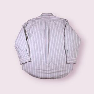Polo Ralph Lauren Thick Button Up Down Front White Shirt Teal Strip Size 16 - 32