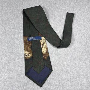 Polo Ralph Lauren Tie Men's Green Silk Hunting Dogs Print Made in USA Handmade Necktie