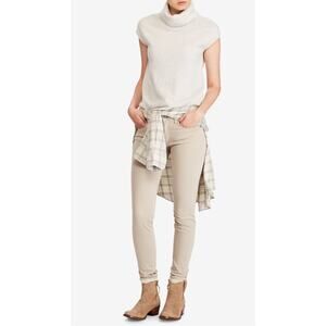 Polo Ralph Lauren Tompkins Cream Skinny Jeans Cotton Sateen Luxe Minimal NEW