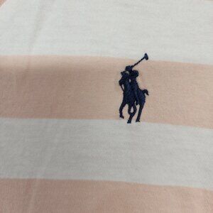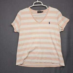 Polo Ralph Lauren Top Women XL Pink Stripe Short Sleeve V Neck Casual Preppy