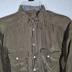 Polo Ralph Lauren Top Womens Medium Green Silk 1/4 Button Long Sleeves Collared