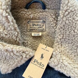 Polo Ralph Lauren Trucker Jacket Denim Sherpa Lined American Flag Mens Size 2XLT