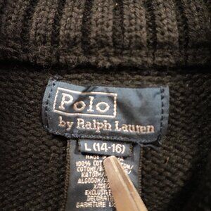 Polo Ralph Lauren Unisex Cream & Black Striped Cotton Half-Zip Sweater Size L (14-16)