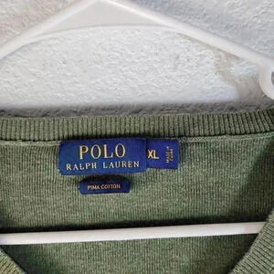Polo Ralph Lauren V Neck Green Pullover Pima Cotton Sweater