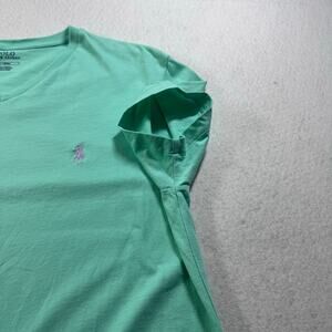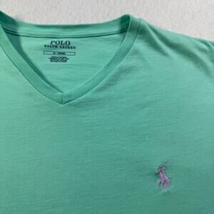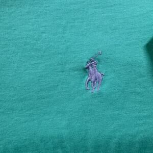 Polo Ralph Lauren V Neck Shirt Green with Purple Pony Size Medium