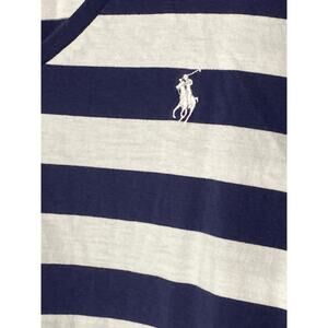 Polo Ralph Lauren V Neck Short Sleeve Blue White Striped T-Shirt Women's L