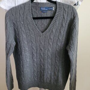 Polo Ralph Lauren V-Neck Plaited Cable Cashmere Sweater