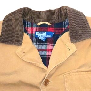 Polo Ralph Lauren VTG 90s Y2K Plaid Flannel Lined Tan Canvas Hunting Coat Size L