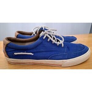 Have some wear to soles and canvas uppers. Some slight fading on blue canvas. Please see all photos.