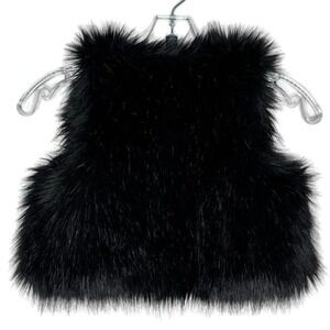 Polo Ralph Lauren Vest Girls 5l Black Faux Fur Open Neutral Playful Fun Trendy