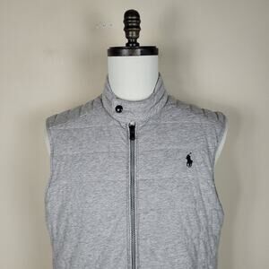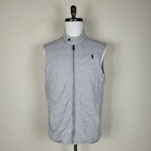Polo Ralph Lauren Vest Mens Medium Gray Quilted Zip Casual Preppy Mock Collar