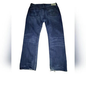 Polo Ralph Lauren Vintage 67 Men's Straight Leg Medium Wash Blue Jeans, 36X32, these jeans are perfectly worn in and gently frayed around the hem