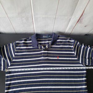 Polo Ralph Lauren Vintage 90’s Classic Fit, Textured Knit Striped Short-Sleeve Shirt, Men’s XXL, Navy/White/Yellow 100% Cotton, EUC