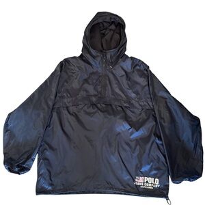 Polo Ralph Lauren Vintage Black Packable rain Windbreaker pullover jacket XXL